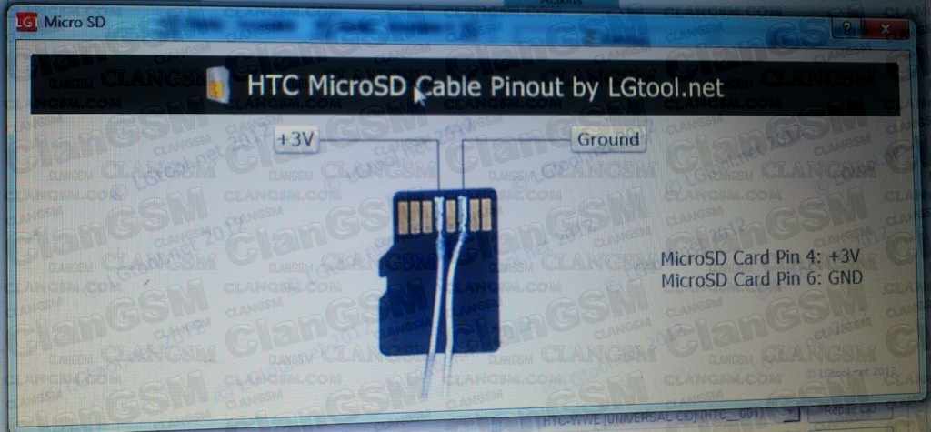 Para conectar con este teléfono se debe utilizar cable especial microSD. Pulse el botón "Cable" para ver pinout. Con el fin de hacer cable microSD usted debe hacer lo siguiente: 1. Obtenga una tarjeta microSD (1Gb o 2Gb, no utilice SDHC). 2. Consigue dos alambres finos. 3. Alambre de soldadura primero microSD para pin4 (+2,8 V.. 3,0 V). 4. Alambre de soldadura de segunda microSD para pin6 (GND). 5. Se puede utilizar cualquier fuente de +3 V (incluso 2xAAA) como fuente de alimentación. 6. También puedes usar lector de tarjetas microSD. 7. Fuente de alimentación externa (+3 V) necesario sólo para el teléfono microSD lector. 8. No utilice la fuente de alimentación externa con microSD lector PC -------------------- unlocker-dan[center][/center]