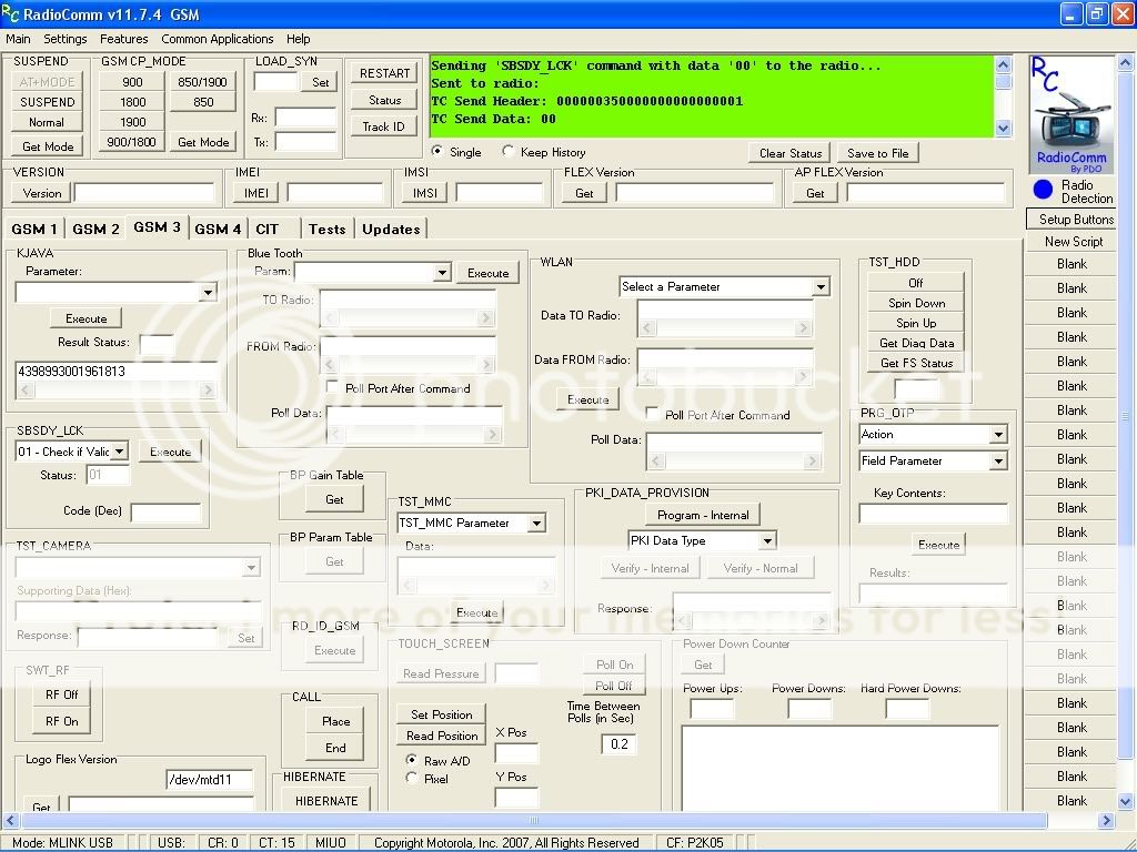 si sta bloqueado con codigo persona el Motorola hay ke hacer esto... Descargar el Radiocomm, Drivers correspondientes Drivers 3.7.0 Despues de instalar los drivers, instalan el Radiocomm, seleccionan, GSM, y USB (M-LINK), despues de eso abrira el programa, se tarda un poco, no se preocupen, despues de esto nos vamos a la barra que dice CIT en mayusculas, ahi, seleccionamos donde dice INVM, despues 00 - Mstr Rst, conectamos el cel, esperamos a que lo detecte, tiene que estar el circulo en color verde, y en la parte inferior en la barra de tareas tambien en color verde y dice USB....... le damos EXECUTE, cuando termine el proceso tiene que salir en el cuadro del programa en verde un codigo, despues le damos RESTART.... pongo la fuente asi por ke no se si infrinja algun reglamento..... fuente:http://www.gsmteam.net/ForoV4/showthread.php/1374-Sacar-codigo-con-RadioComm..-A1200-y-otros. hola de verdad muchas gracias por la solucion la busq por todas partes y me funciono perfecto con un a1200 Mensaje modificado por verny el Nov 24 2010, 01:01 PM |
