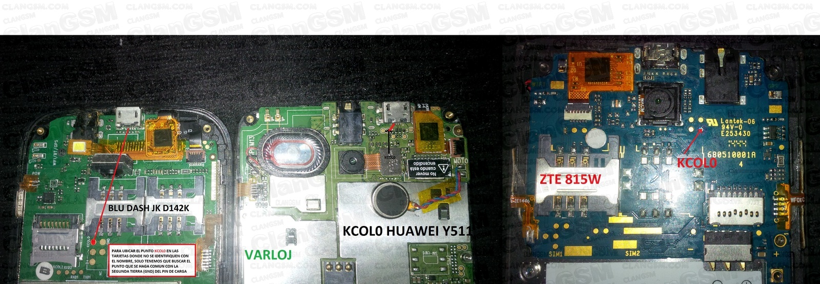 hola me podrían ayudar? ya destape el laxin x200 ya vi que dice kcolo y ya vi que tiene el gnd pero mi duda es el kcolo nada mas vienen las letras no trae para soldar esta abajo de donde dice speaker osea que no tiene ni a donde soldarlo podrían ayudarme les anexo una foto a ver si puedo gracias espero me puedan ayudar estoy desesperado por que le cargue la rom y ya no encendio gracias Hola el Kcol0 es el puntito dorado justo arriba del boton de volumen mas, soldar un pequeño alambre entre los puntos kcol0 y gnd hara que te reconozca el equipo tu pc, espero haber ayudado |