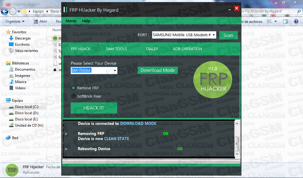 instalar el programa adjunto, tener los drivers samsung instalado. poner el tlf en modo download abrir el programa seleccionar el modelo y darle a erase frp...agradecer no cuesta nada. si se les queda pegado en el logo darle al fixer debajo de la opcion o sacarle la bateria y volver a insertar para que arranque.